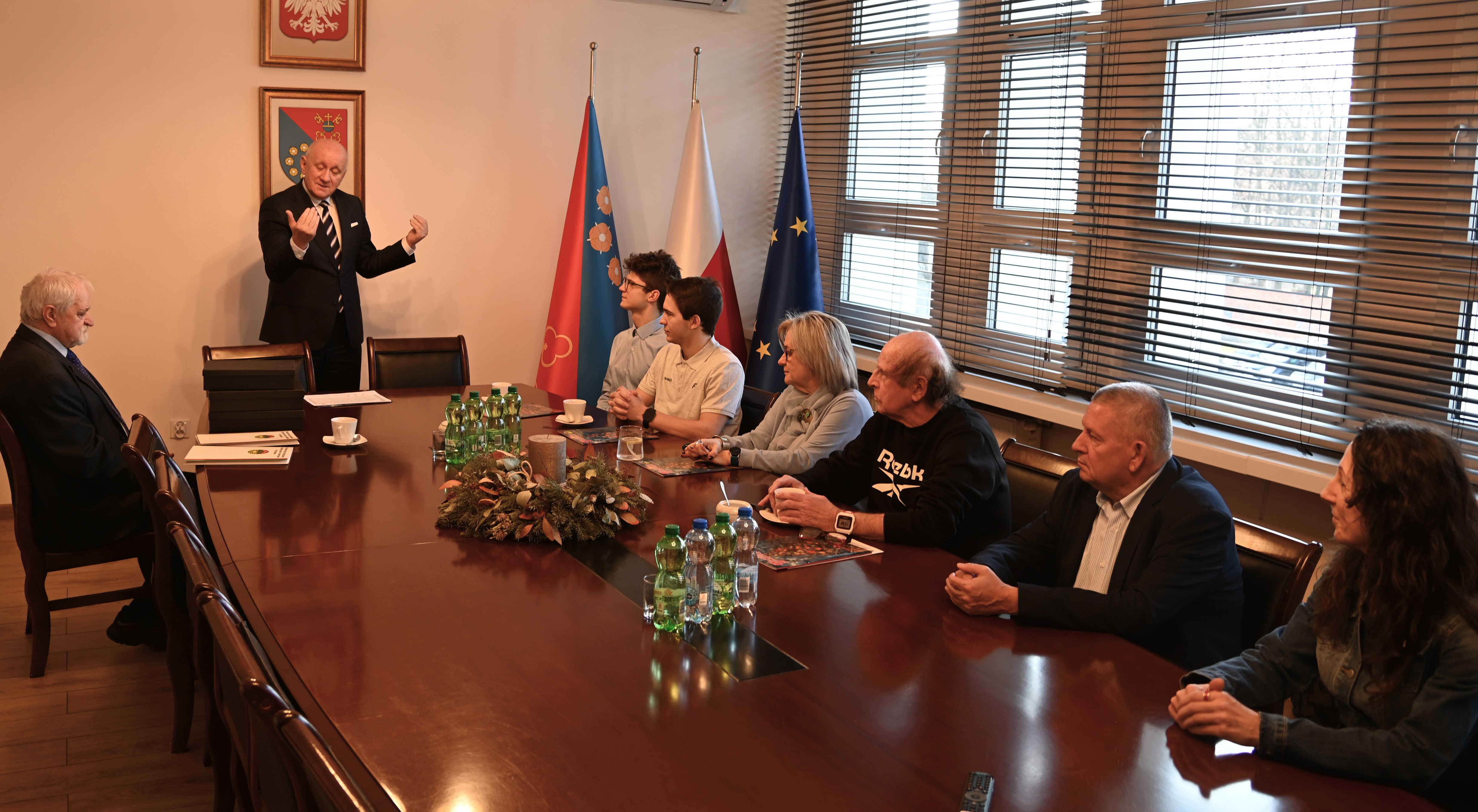 Starosta Ostrowski Paweł Rajski pogratulował wszystkim sportowcom oraz ich opiekunom, których w starostwie reprezentowali dyrektorka ZST Magdalena Wojtasz, dyrektor I LO Marek Lewicki i nauczycielka tej szkoły Katarzyna Nadachowska oraz trener Marek Walczak.